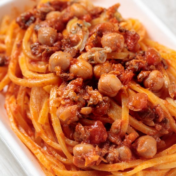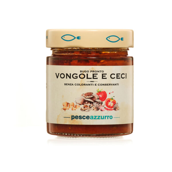 Il sugo vongole e ceci abbina il sapore delicato delle vongole del mediterraneo al profumo dei ceci ed è ideale per preparare primi veloci. In abbinamento con la pasta all’uovo o con la pasta corta di grano duro, il sugo alle vongole e ceci dona ai primi piatti un tocco originale.